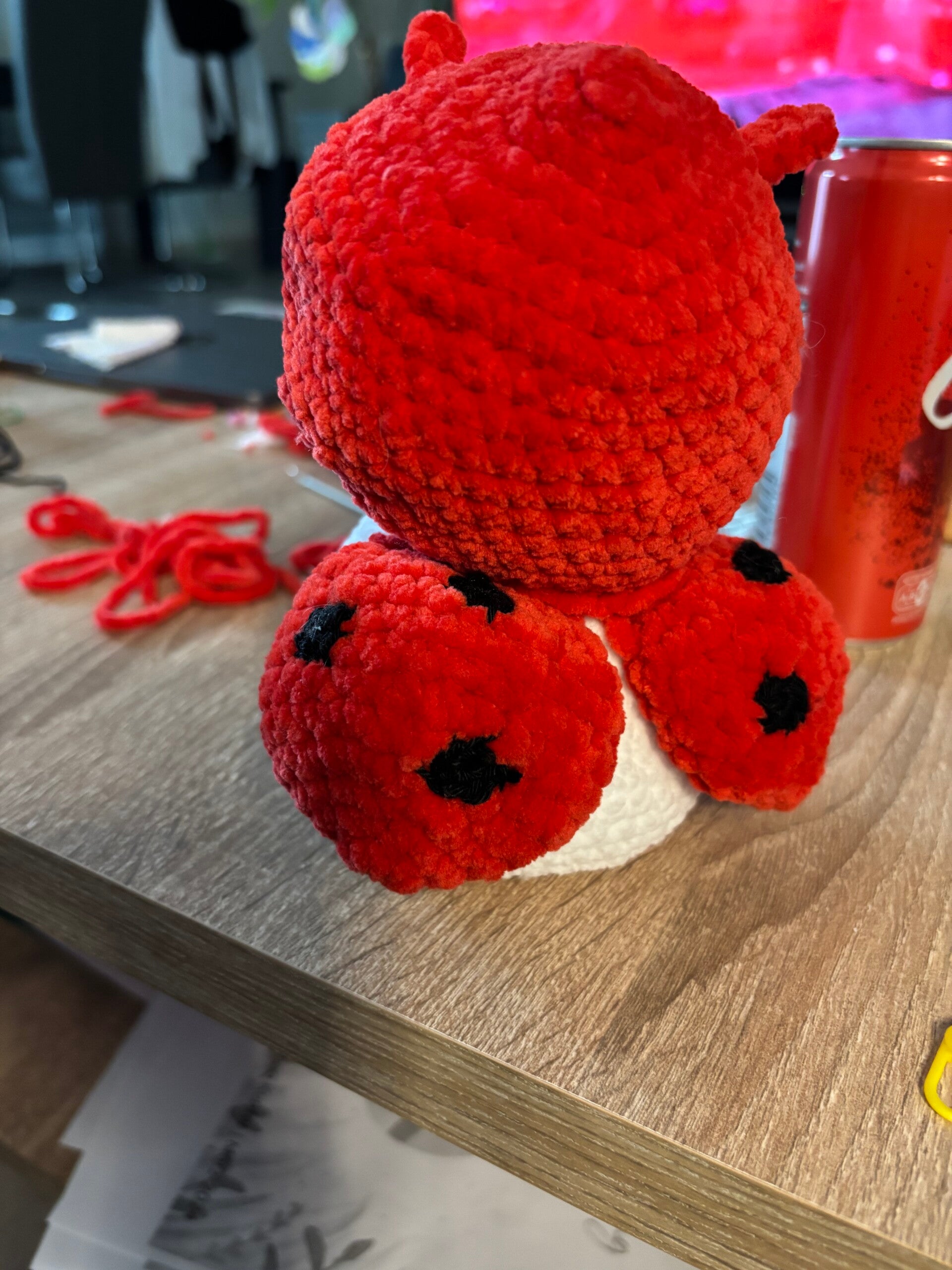 Der süße Marienkäfer ist ca 17cm groß. Ich habe ihn aus Kuschelwolle gehäkelt.